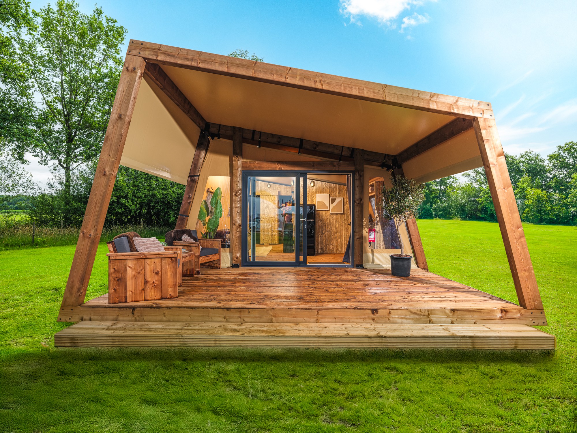 De Nature Lodge is een nieuwe accommodatie binnen het assortiment van CampSolutions. Deze lodge combineert een eigentijdse uitstraling met praktisch gebruiksgemak en sluit aan bij de groeiende vraag naar luxe familietenten in de recreatiesector. De Nature Lodge is ontworpen als comfortabele verblijfsoplossing voor uiteenlopende doelgroepen.